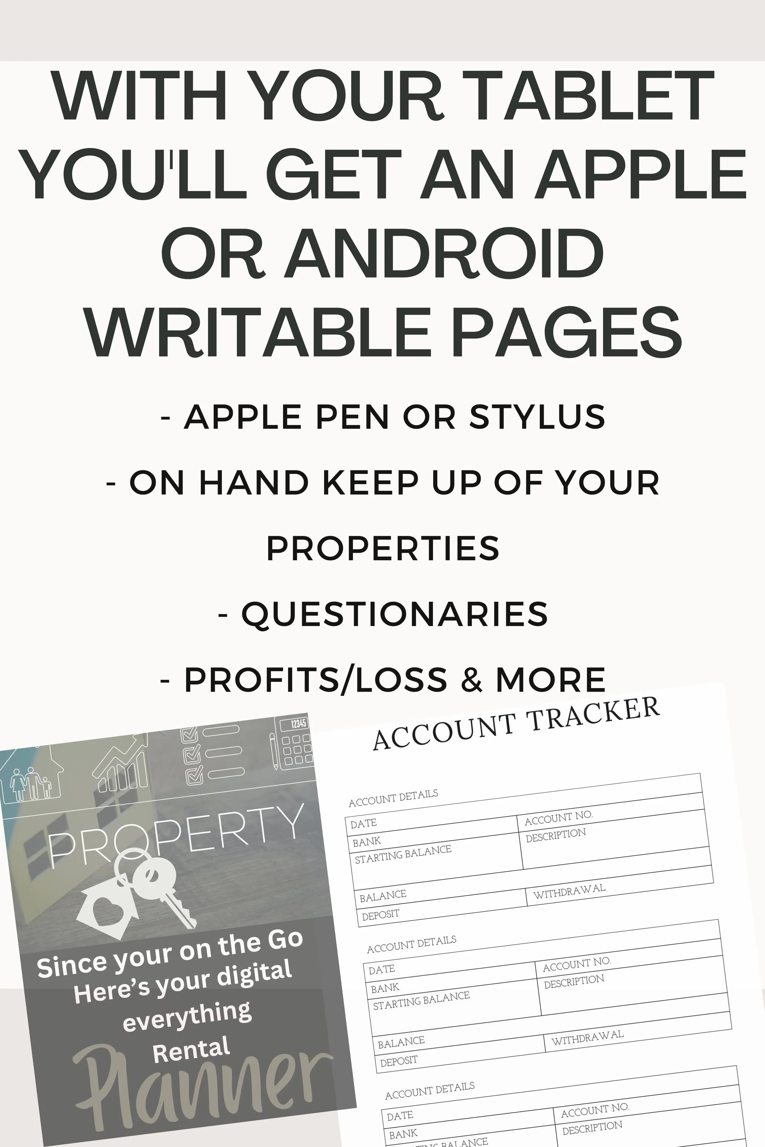 Rather you are a real estate agent, property owner, owner of an Airbnb or the ownership you have that you rent out to others. Look no further for your on the go digital rental planner.